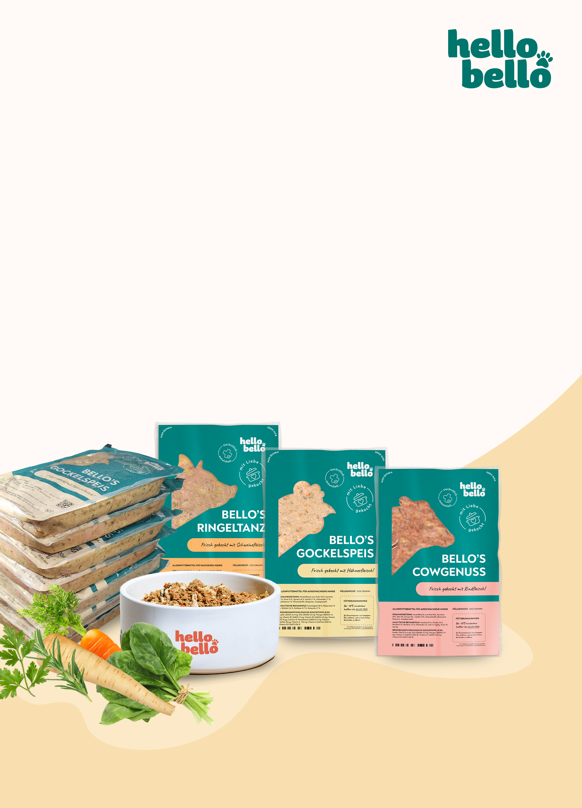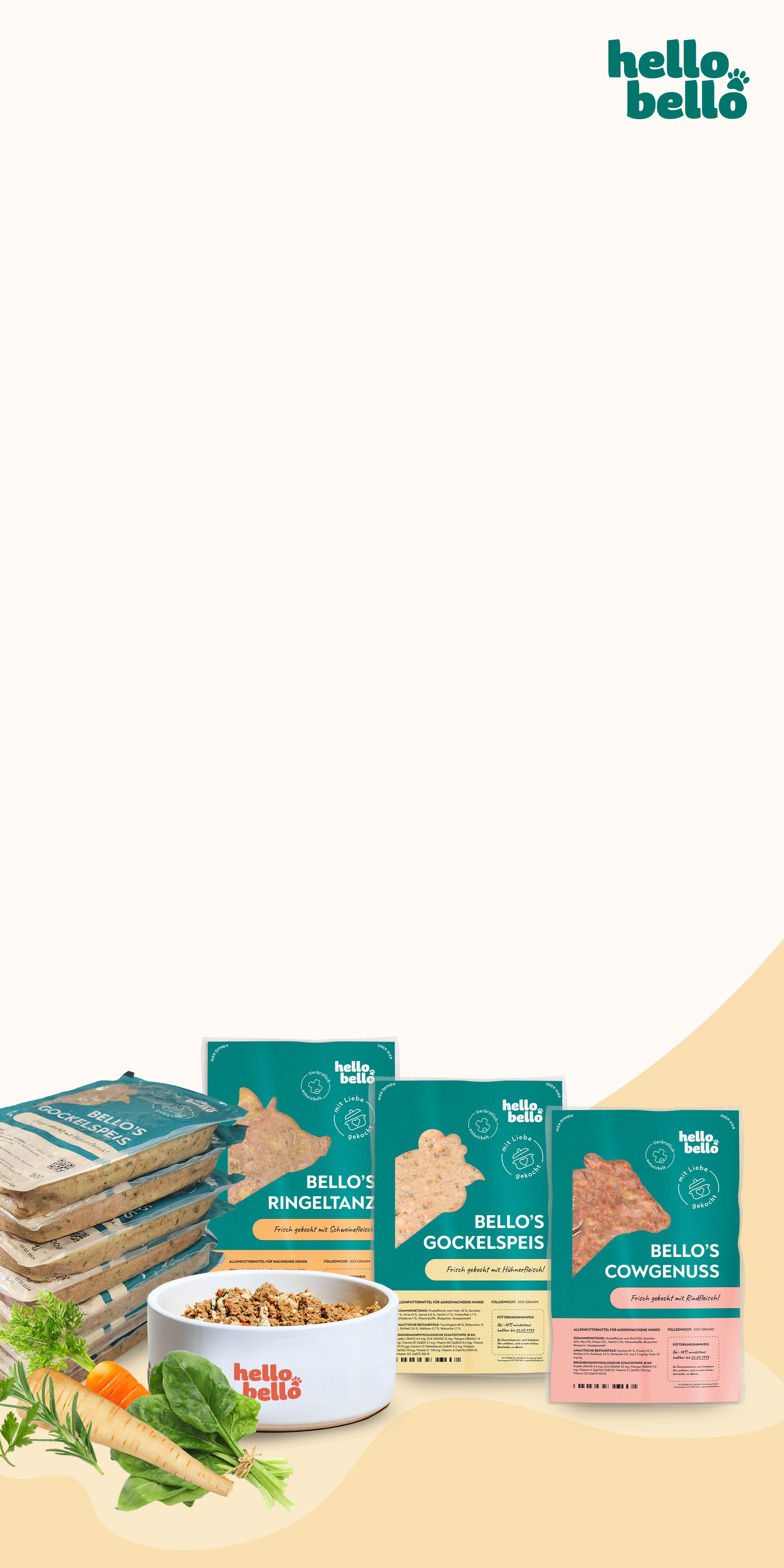 Hilfe! Mein Hund hat Durchfall Hat dein Hund Durchfall? Dann kannst du genau das tun Wenn dein Hund Durchfall hat, ist jede Minute des Unbehagens eine zu viel. Verdauungsprobleme sind nicht nur unangenehm, sie können auf Unverträglichkeiten, Stress oder falsche Ernährung hinweisen. Die gute Nachricht: Das richtige Hundefutter kann hier Wunder wirken. In diesem Blog erfährst du, warum HelloBello mit seiner schonenden Rezeptur und hochwertigen Frischfutterzutaten ideal ist, um den Magen Darm Trakt zu beruhigen, und wie du deinem Hund schnell wieder zu Wohlbefinden verhilfst.  Teste HelloBello und spare 30 % auf deine erste Lieferung! Hat dein Hund Durchfall? – Ursachen und Symptome Durchfall bei Hunden ist ein häufiges, aber komplexes Problem, das vielfältige Ursachen haben kann. An erster Stelle stehen infektiöse Auslöser wie Bakterien oder Viren, die den Magen-Darm-Trakt belasten können. Zu den typischen Auslösern zählen plötzliche Futterumstellungen, die den sensiblen Magen-Darm-Trakt überfordern, sowie Stress durch Reisen, Umzüge oder Veränderungen im Alltag. Auch Darmparasiten wie Giardien oder Würmer können Verdauungsstörungen verursachen, ebenso wie verdorbenes Futter, Futtermittelunverträglichkeiten oder die Aufnahme von Giftstoffen. Selbst harmlose Auslöser wie zu viele Leckerlis oder „Beutefang“ im Garten können zu vorübergehenden Beschwerden führen. Doch wann wird beim Hund Durchfall zum Alarmzeichen? Ein Besuch beim Tierarzt ist dringend ratsam, wenn: Blut oder Schleim im Kot sichtbar ist der Hund apathisch wirkt, Fieber hat oder erbricht die Symptome länger als 24–48 Stunden anhalten Anzeichen von Dehydrierung auftreten (trockene Schleimhäute, eingesunkene Augen) Wenn dein Hund Durchfall hat dann dürfen scheinbar harmlose Fälle nicht ignoriert werden: Unbehandelt kann Durchfall zu Nährstoffmangel, Gewichtsverlust oder chronischen Entzündungen führen. Frühzeitiges Handeln, oder Präventionsarbeit mildert nicht nur die Symptome, sondern hilft auch, ernste Ursachen auszuschließen. Die richtige Futterwahl, wenn dein Hund Durchfall hat Die Auswahl des richtigen Futters ist entscheidend, um beim Hund Durchfall vorzubeugen. Verdauungsprobleme wie Durchfall schwächen nicht nur den Magen-Darm-Trakt, sondern beeinträchtigen das gesamte Wohlbefinden deines Hundes. Ein gestresstes Verdauungssystem kann Nährstoffe schlechter aufnehmen, was zu Energiemangel, Dehydrierung und langfristigen Gesundheitsrisiken führt. Die Wahl des Futters spielt hier, nicht nur wenn dein Hund Durchfall hat, eine Schlüsselrolle: Während belastende Zutaten die Symptome verschlimmern, kann leicht verdauliches, nährstoffreiches Futter wie HelloBello die Regeneration beschleunigen. Frischfutter bietet dabei den Vorteil, hochwertige Proteine und Ballaststoffe ohne künstliche Zusätze zu liefern, ideal, um den Körper zu entlasten und gleichzeitig mit essenziellen Vitaminen zu versorgen. Bei HelloBello wird besonders darauf geachtet, dass die Zutaten frisch, hochwertig und gesund sind. Durch die Zugabe von natürlichen Ölen wie Hanföl, gesundem Gemüse und wertvollen Nährstoffen, wird sichergestellt, dass dein Hund alle essenziellen Nährstoffe erhält, die er für ein vitales und glückliches Leben braucht. So bestellst du das beste Hundefutter bei HelloBello Die Bestellung von HelloBello Frischfutter ist kinderleicht: Lass dir das frisch gekochte Futter bequem und optimal portioniert direkt nach Hause liefern. Besuche die HelloBello-Website. Gib alle wichtigen Daten zu deinem Hund in unserem Futterkonfigurator an und erhalte deinen individuellen Futterplan – abgestimmt auf die Bedürfnisse deines Vierbeiners. HelloBello im Fokus: Warum es das beste Futter ist, wenn dein Hund Durchfall hat HelloBello: Natürlichkeit & Verträglichkeit HelloBello setzt auf eine klare Vision: Futter, das so natürlich ist wie die Bedürfnisse deines Hundes. Die Rezepturen verzichten bewusst auf künstliche Farb-, Aroma- oder Konservierungsstoffe, um den sensiblen Magen-Darm-Trakt nicht zusätzlich zu reizen. Stattdessen stehen frische, hochwertige Zutaten im Mittelpunkt, die nicht nur nähren, sondern auch aktiv zur Regeneration beitragen. Diese Philosophie macht HelloBello besonders bei Verdauungsproblemen zur vertrauenswürdigen Wahl, denn weniger Belastung bedeutet mehr Raum für Heilung. Wenn dein Hund Durchfall hat, ist es die optimale Lösung und auch so kann HelloBello überzeugen. Schlüsselzutaten bei Magen-Darm-Problemen Die Wirksamkeit von HelloBello, wenn dein Hund Durchfall hat, basiert auf vier Säulen: Hochwertige Proteine: Mageres Huhn liefert leicht verdauliches Eiweiß, das den Körper ohne Überlastung mit essenziellen Aminosäuren versorgt. Sanfte Kohlenhydratquellen: Reis und Süßkartoffel sind gut verträgliche Energielieferanten, die den Darm beruhigen und stabilisieren. Reis bindet überschüssige Flüssigkeit, während Süßkartoffeln präbiotische Ballaststoffe für eine gesunde Darmflora bieten. Verzicht auf Reizstoffe: HelloBello enthält weder Getreide noch künstliche Zusätze – zwei häufige Auslöser von Unverträglichkeiten. Diese Reduktion auf das Wesentliche minimiert das Risiko, den gereizten Verdauungstrakt weiter zu stressen. Omega Fettsäuren: HelloBello enthält Hanföl. Hanföl ist besonders reich an den essenziellen Fettsäuren Omega-3 und Omega-6, die der Körper des Hundes nicht selbst herstellen kann und daher über die Nahrung aufnehmen muss. Diese Fettsäuren spielen eine wichtige Rolle bei zahlreichen Körperfunktionen Durch diese Kombination aus ausgewählten Inhaltsstoffen und schonender Verarbeitung unterstützt HelloBello nicht nur die akute Genesung, sondern stärkt langfristig die Widerstandsfähigkeit des Darms. Außerdem kann es das Risiko auf Durchfall verringern, wenn dein Hund Durchfall hat. Vitamine und Mineralstoffe sind wichtig, wenn dein Hund Durchfall hat Frischfutter wird bei Hunden mit Verdauungsproble