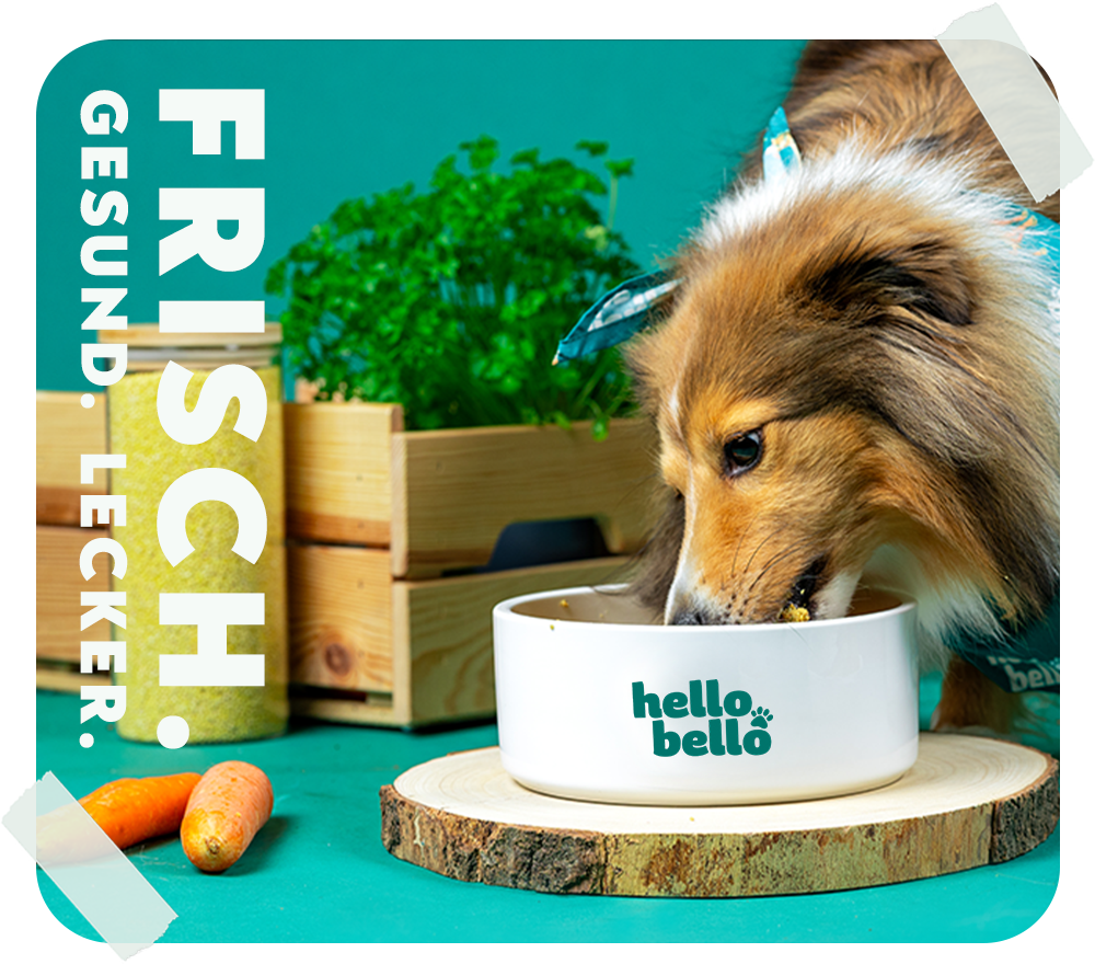 Ersetze 50% des aktuellen Futters deines Hundes durch HelloBello Vollwertnahrung.